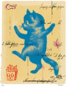 Original Ink on Paper titled "Blue Crap Cat" by artist Gary Taxali