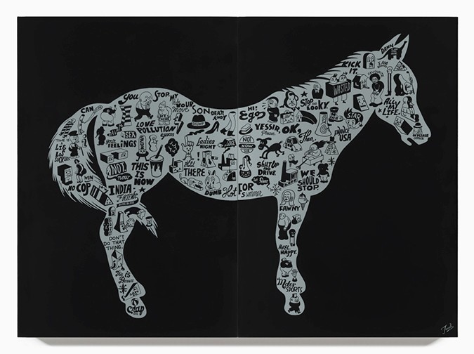 "Dolly Hotel", a painting in Ink on Paper by Gary Taxali