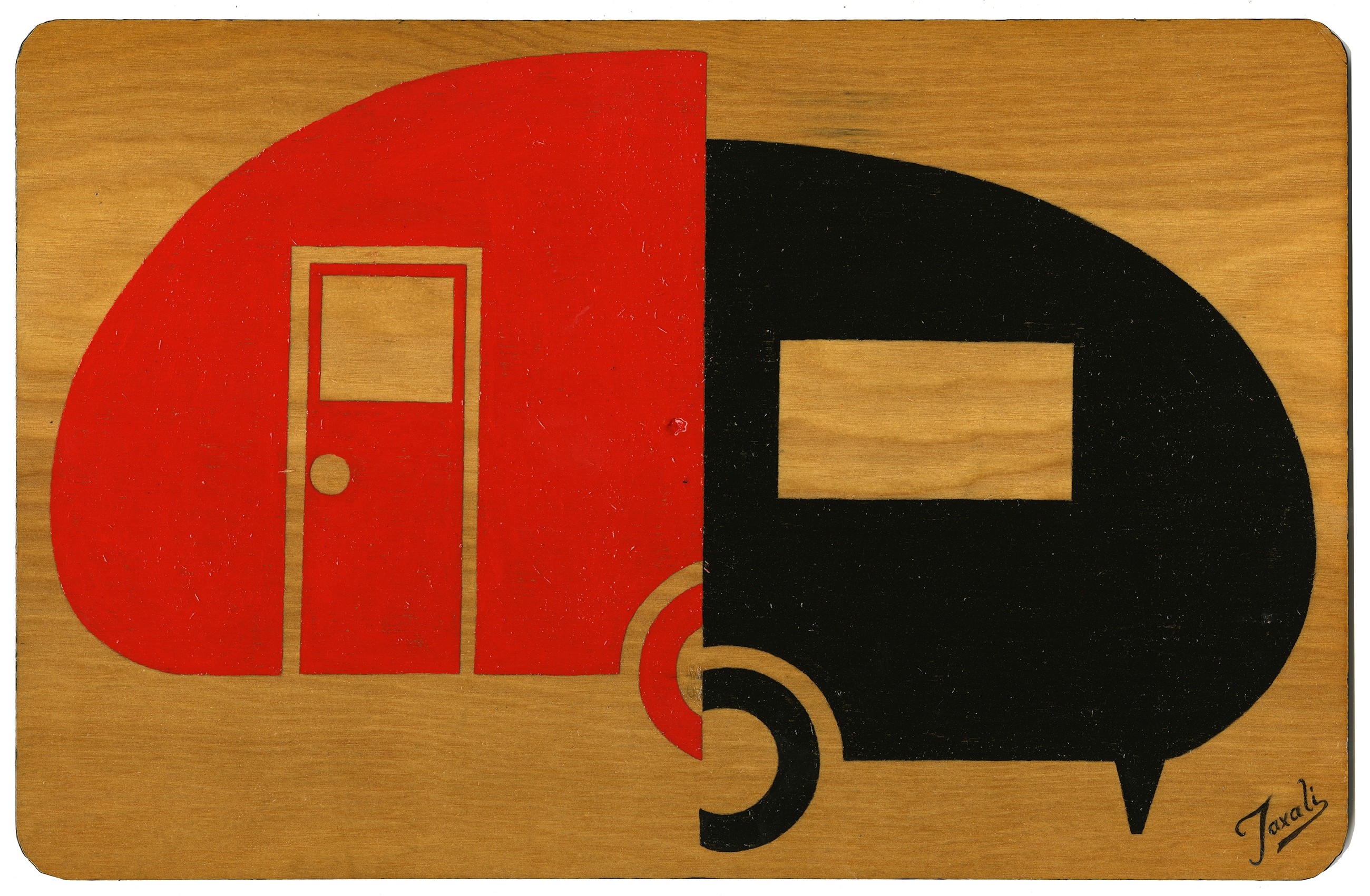 Red and Black Trailer, a painting in Oil on Plywood by Gary Taxali