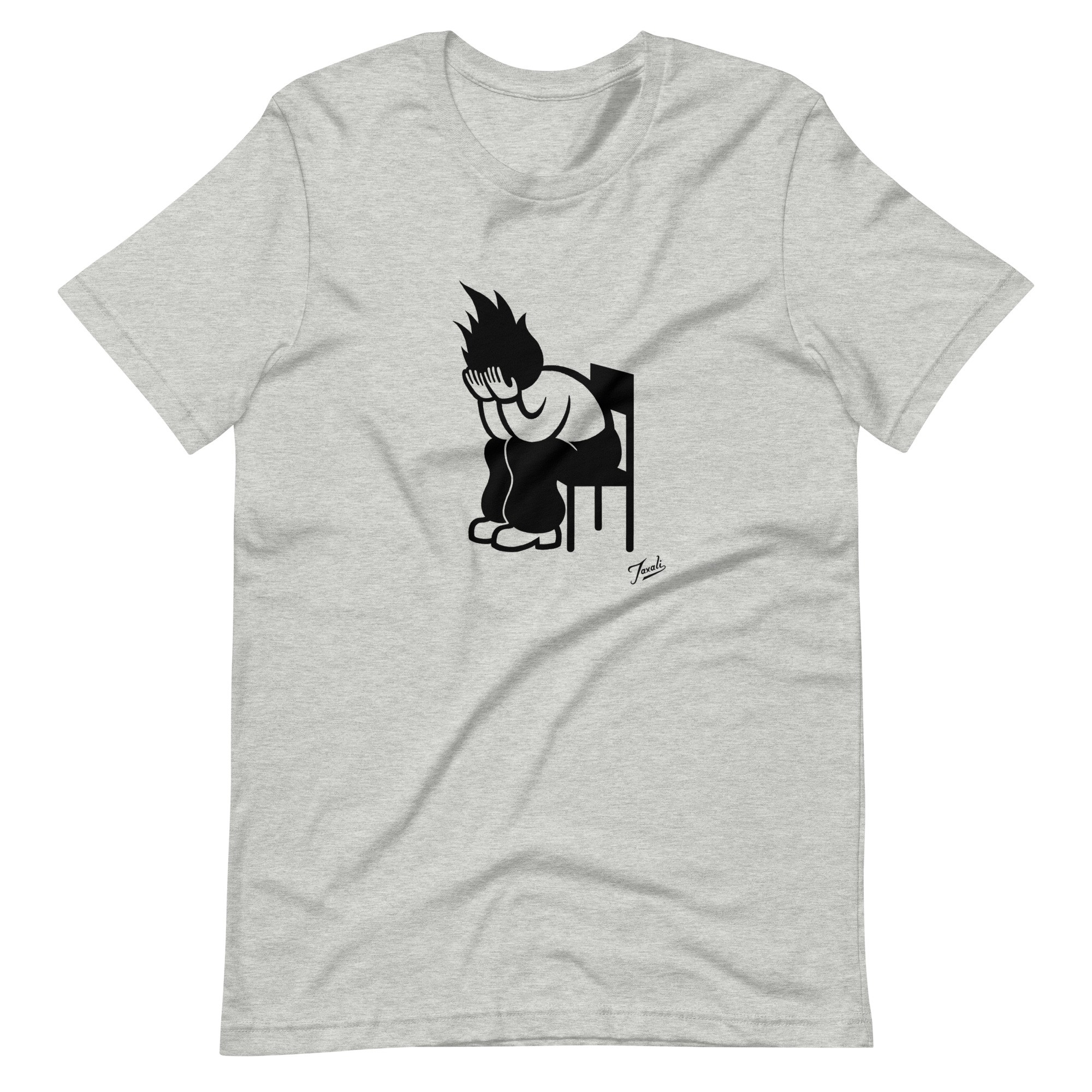 “Fire Chair” transforms a surreal domestic scene into a bold graphic statement. The image belongs to a body of work exploring the tension between comfort and danger that runs through much of Taxali’s practice. The artist’s work has been exhibited at the Andy Warhol Museum and commissioned by the Whitney Museum. This pop art graphic tee brings gallery-exhibited artwork to the street.