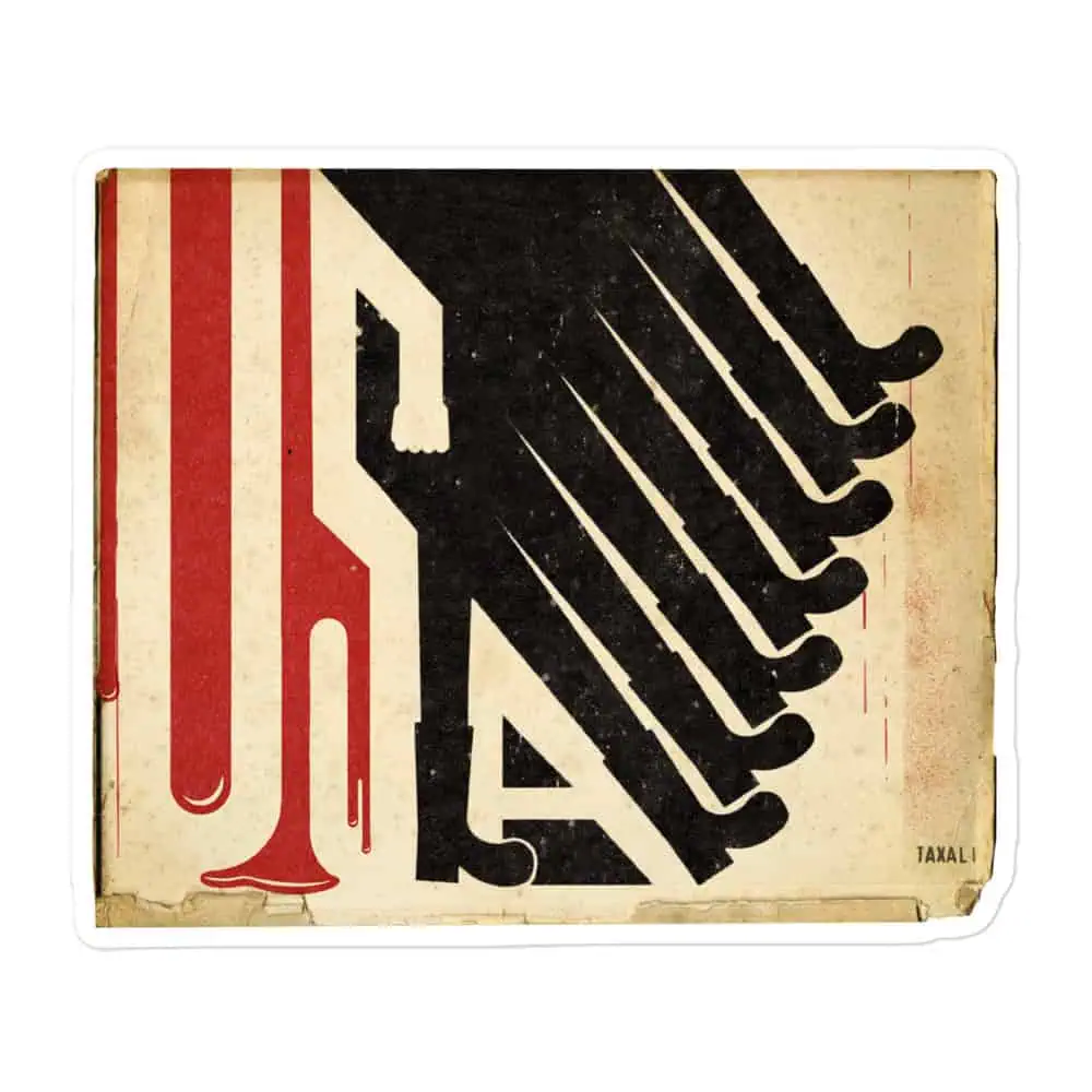 These stickers are printed on durable, high opacity adhesive vinyl which makes them perfect for regular use, as well as for covering other stickers or paint. Taxali co-founded the Illustrators’ Partnership of America, bringing professional standards to the field that produced “ALL LOUD ON THE WESTERN FRONT”.