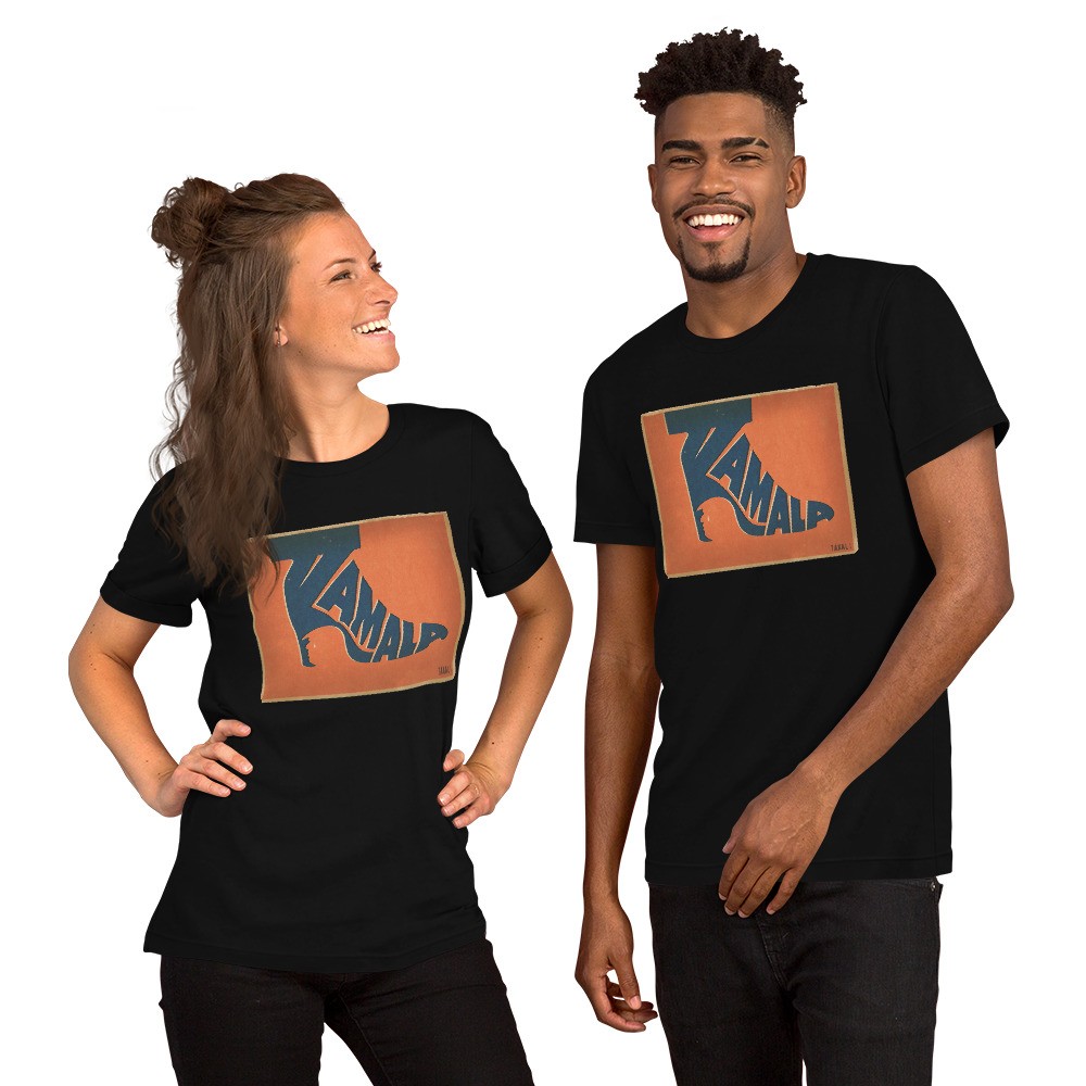 “Kamala Heel” t-shirt by Gary Taxali. Wearable political art from a Library of Congress collected artist.