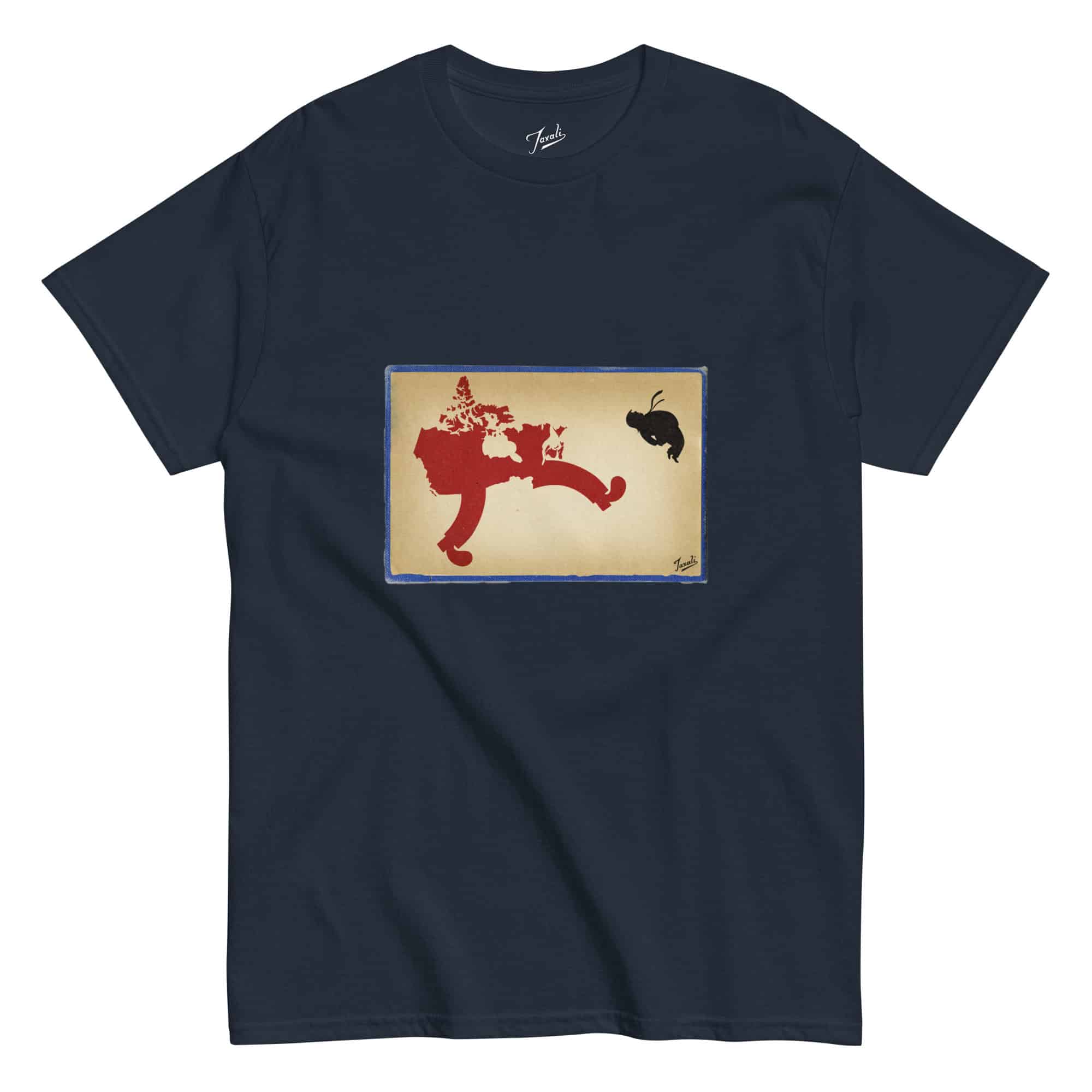 “Message From Canada” by Gary Taxali on a premium t-shirt. This retro graphic tee brings gallery-quality pop art into wearable form. The “Message From Canada” design is printed with water-based inks that stay vibrant wash after wash.