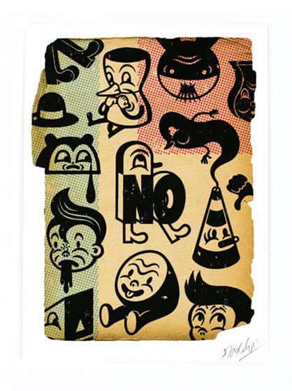 Inspired by vintage comics and period advertisements, these cool art prints by Gary Taxali presents “HAPPINESS WITH A CAVEAT” as a giclée, hand-signed by the artist on Arches paper. Printed with archival inks on Arches, this “HAPPINESS WITH A CAVEAT – Special Edition With Print” edition is built for gallery-standard longevity.