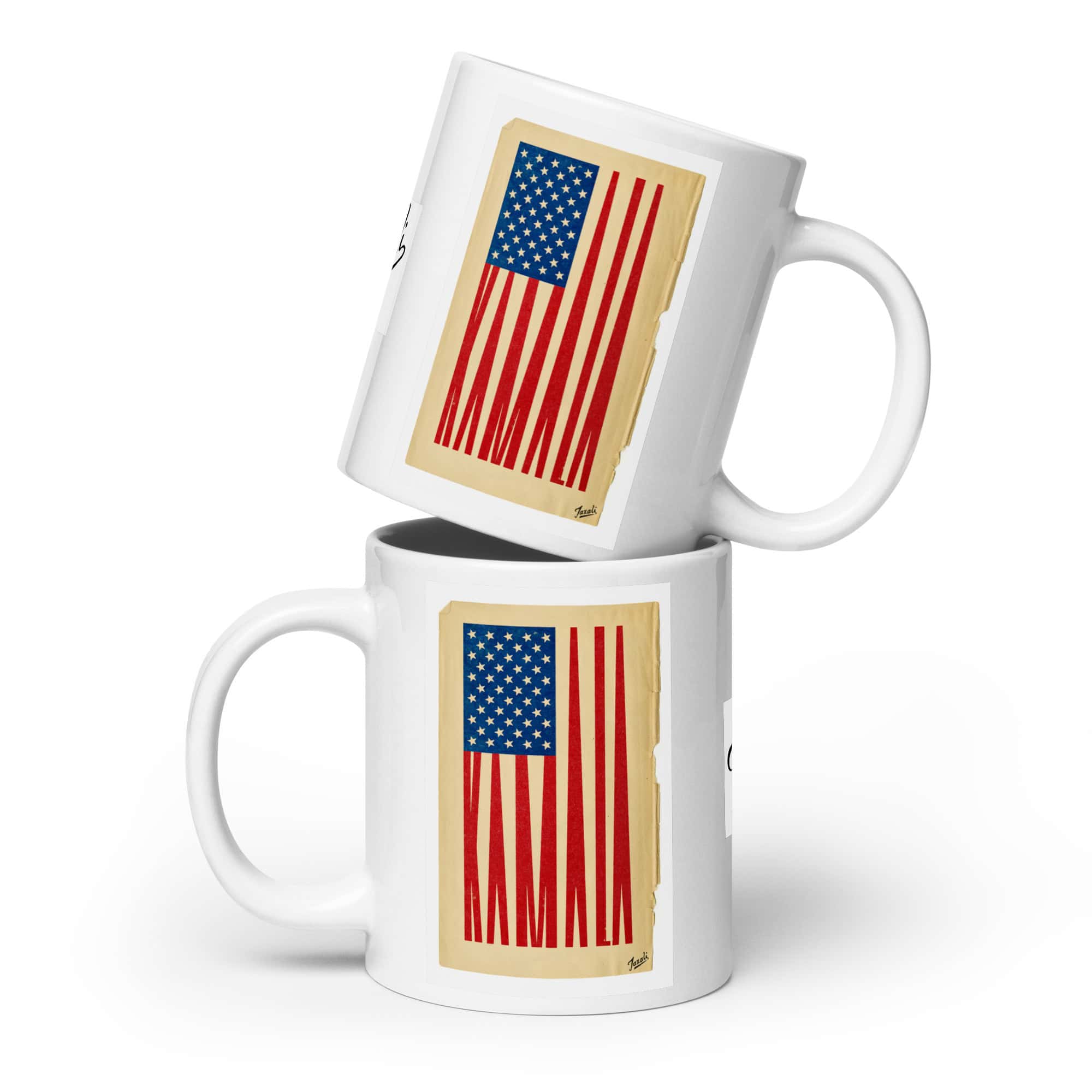 “Kamala” mug by Gary Taxali. Original resistance art featuring pop art design.