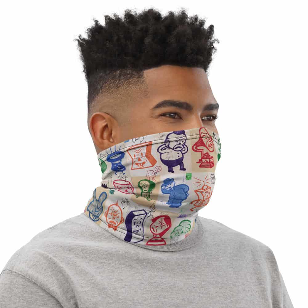 Featuring “Wallop” by Gary Taxali, this pop art face mask brings the artist’s acclaimed pop art aesthetic to wearable form. This “Wallop” gaiter is cut from moisture-wicking microfibre with Taxali’s design printed edge to edge.