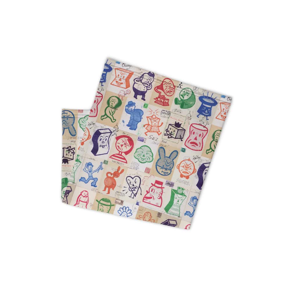 Scholastic published Taxali’s children’s book in 2010; his illustration range extends from kids’ lit to the “Wallop” gaiter. Taxali’s “Wallop” wraps this versatile gaiter — usable as a headband, bandana, or face covering.