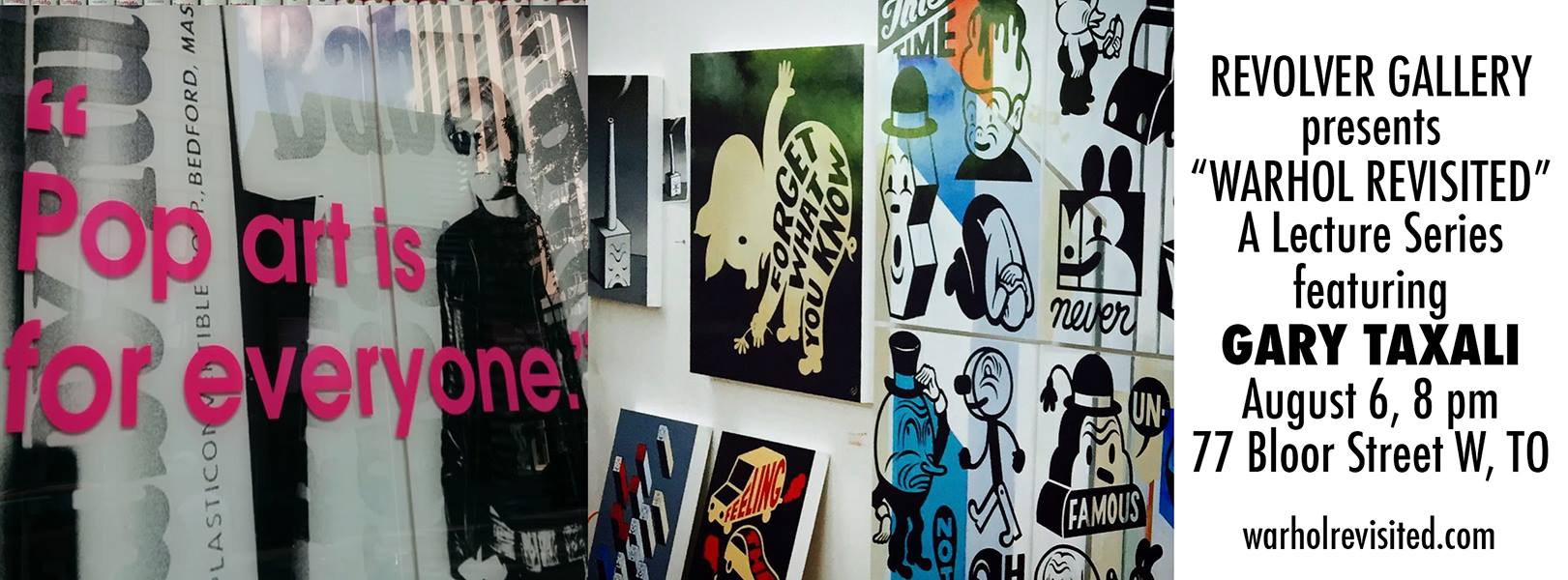 "Rotating Lecture Series: Gary Taxali" Thursday August 6th, 2015 (8 pm to 9 pm) Warhol Revisited, Revolver Gallery - Your Andy Warhol Specialists, 77 Bloor Street, Toronto, ONTickets are available to purchase at the door and online at Revolver Gallery(press passes available through Rock-it promo or contact vandanat@rogers.com)